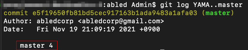 결과 화면을 보시면 YAMA 브랜치에는 없고 master 브랜치에만 있는 "master 4" 커밋을 보여주는 걸 확인할 수 있네요!