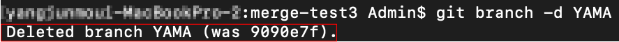 'Deleted branch YAMA'처럼 메시지가 나타나면 브랜치가 삭제된 것입니다.