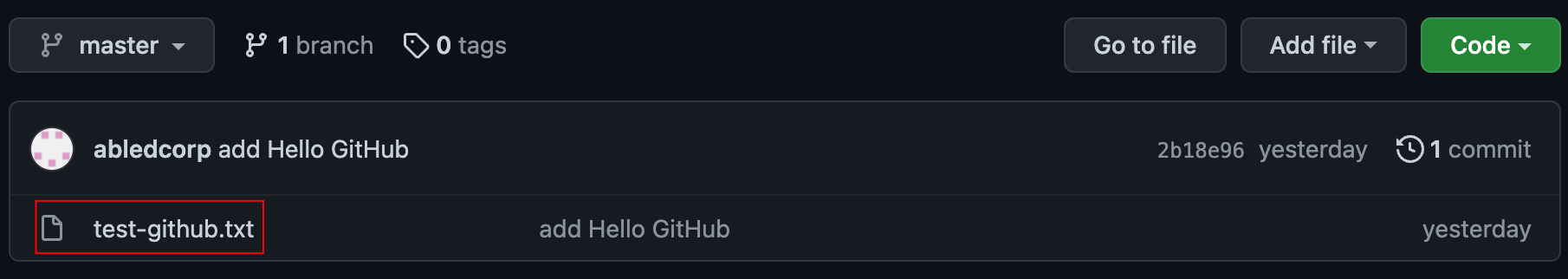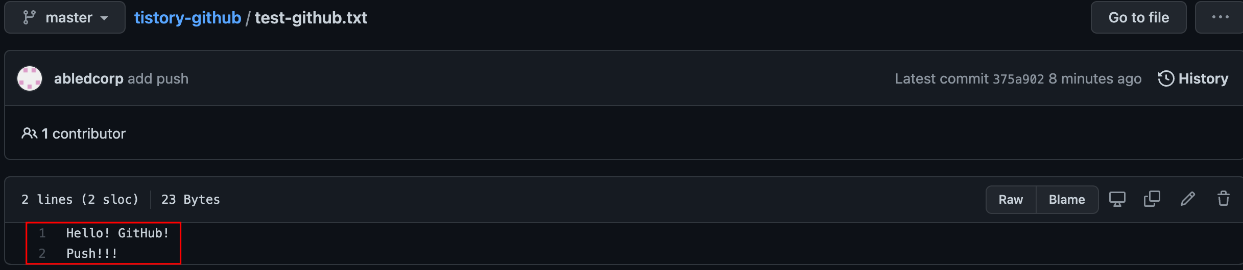 그럼 파일 목록에서 test-github.txt를 눌러볼까요?