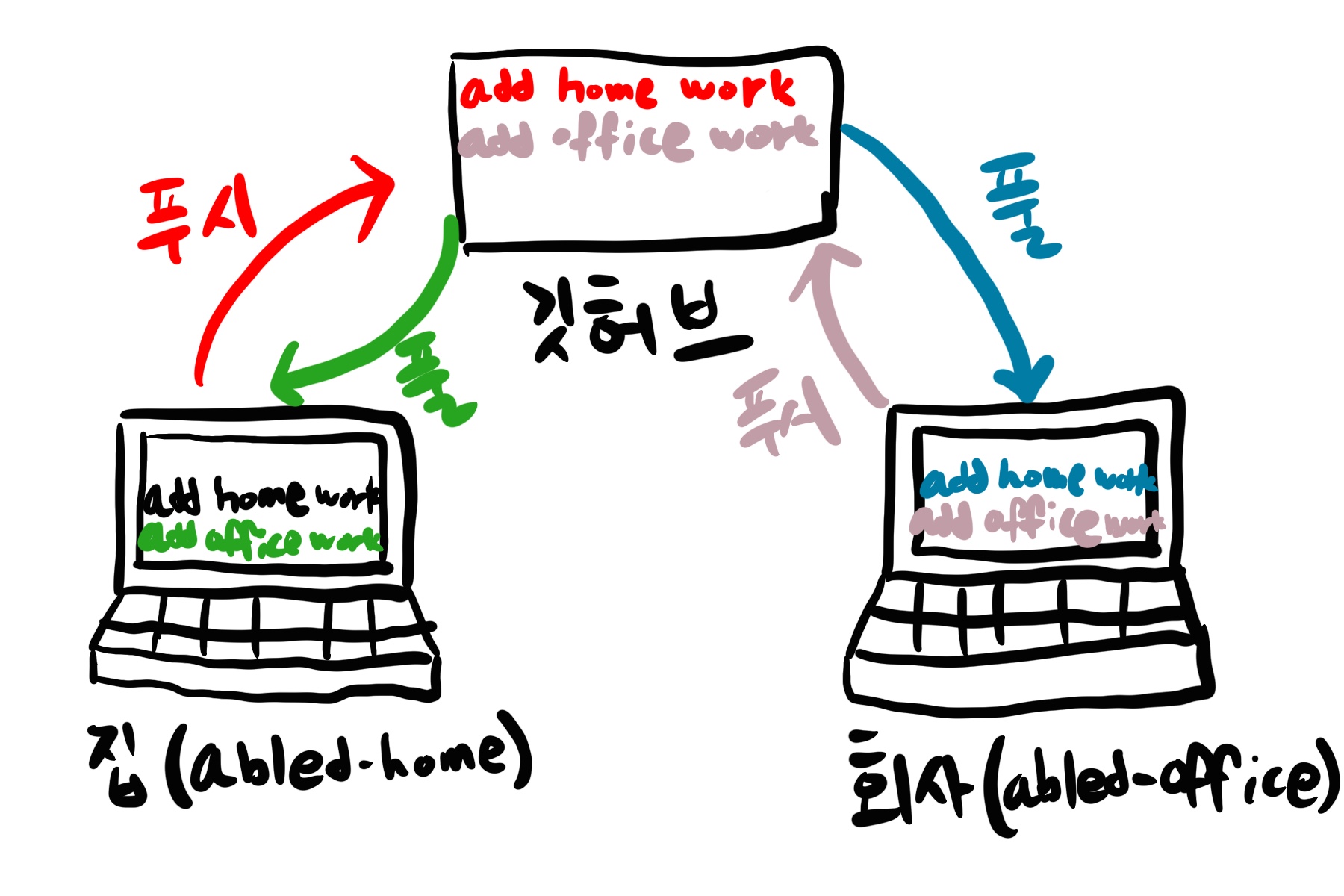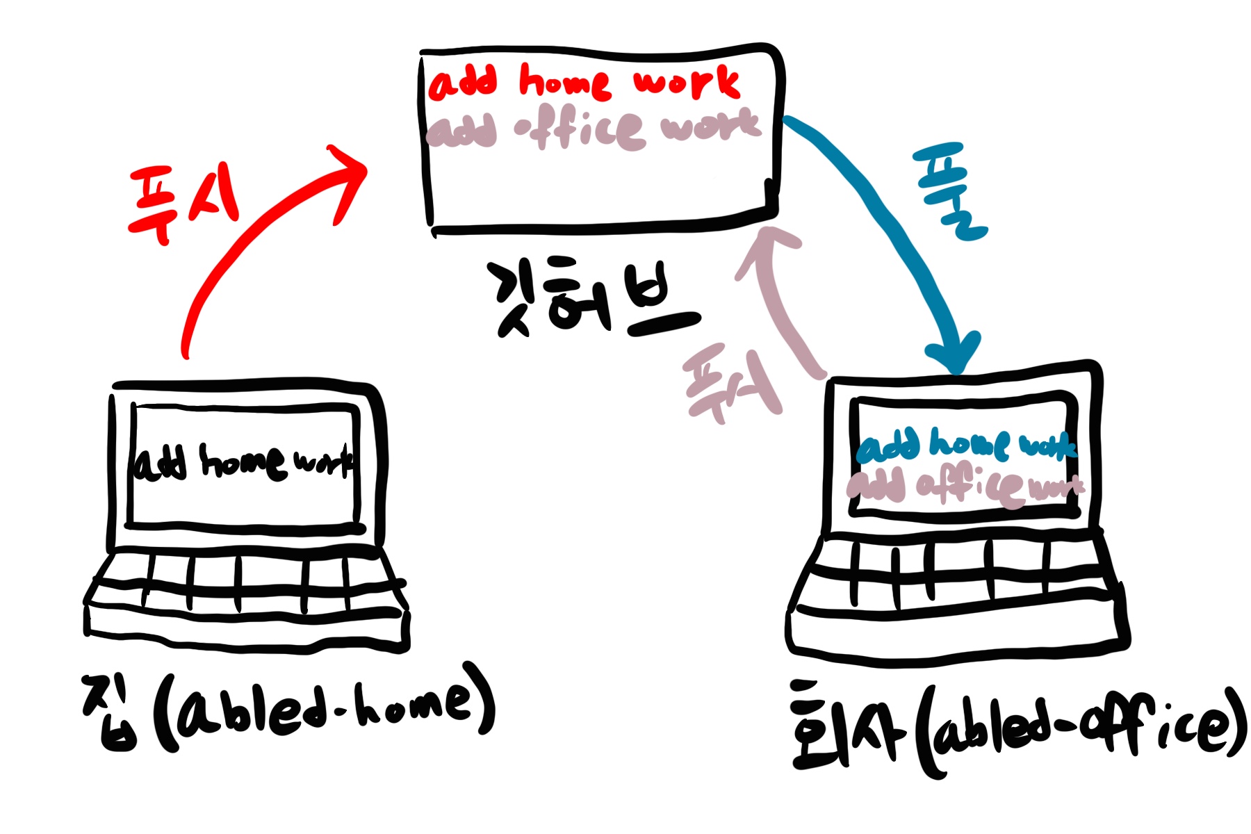 이전 시간에 abled-office의 master 브랜치를 깃허브의 origin과 연결시켜준 것 기억나시죠?
