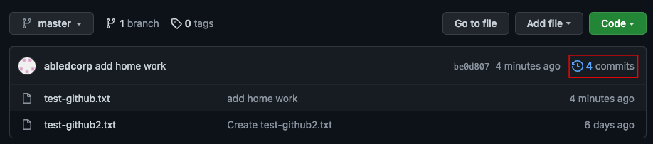 깃허브 리포지토리 파일 리스트 영역 오른쪽 상단에 "commits"를 눌러주세요!