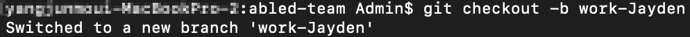 새로운 기능을 구현하기 위해 로컬 리포지토리에 work-Jayden 브랜치를 만들고 체크아웃합니다.