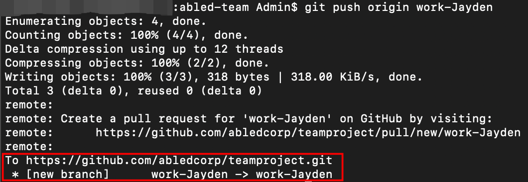 그럼 이제 깃허브 리포지토리에 work-Jayden 브랜치까지 함께 푸시해 줘야겠죠?