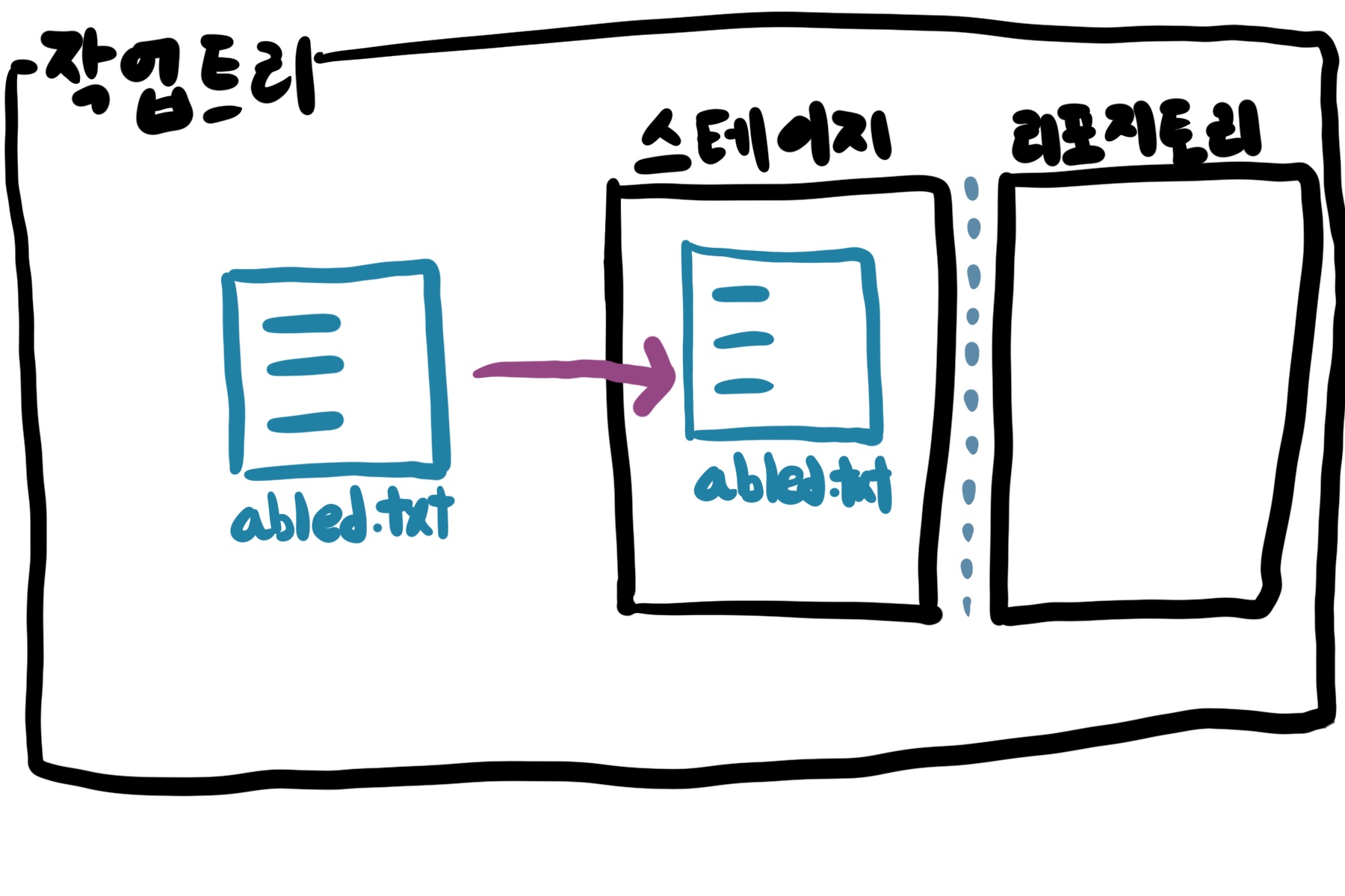 그리고 수정한 abled.txt 파일을 버전으로 만들고 싶을 때 스테이지에 넣습니다.