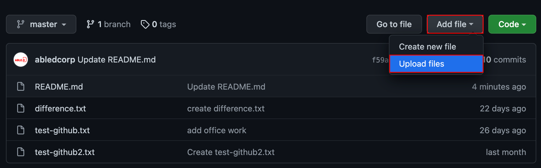 그다음 이미지를 사용할 깃허브 리포지토리에 접속한 후 'Add file'을 누르면 등장하는 'Upload files'를 눌러줍니다.