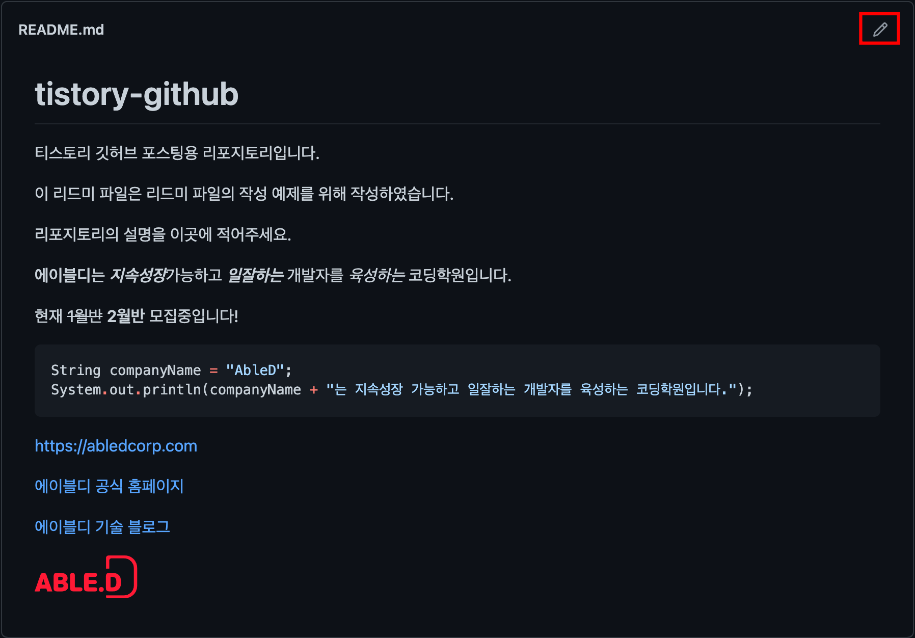 README.md 오른쪽에 있는 펜같이 생긴 아이콘을 눌러주세요!