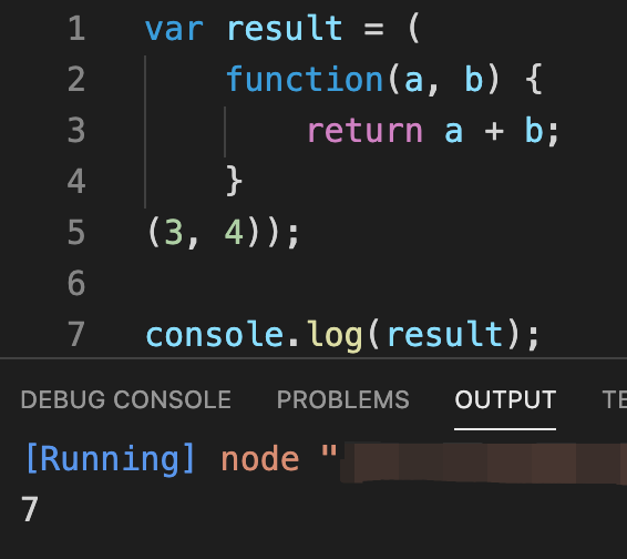 result라는 변수에 바로 즉시 실행 함수를 선언하고 실행하여 결괏값을 할당하는 코드를 작성해 보았는데요.