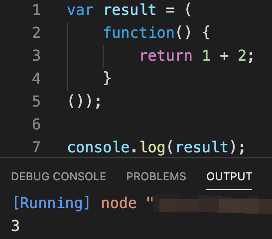 함수를 선언하고 선언한 함수를 호출하는 과정 없이 바로 함수가 실행되어 1 + 2 = 3이라는 결괏값을 출력하는 걸 확인할 수 있습니다.