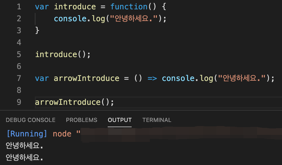 var arrowIntroduce = () => console.log("안녕하세요.");