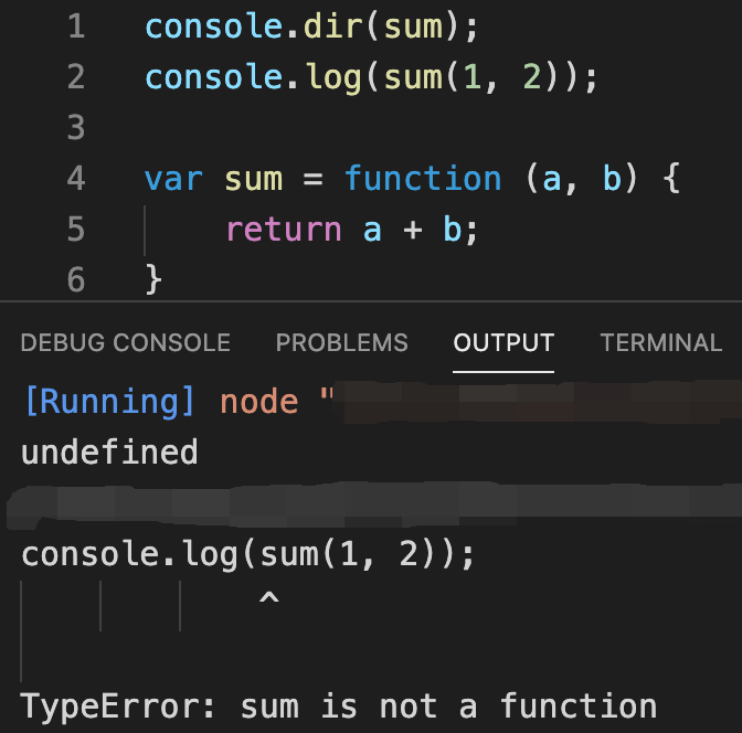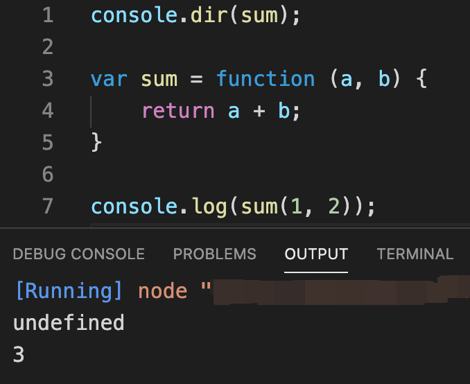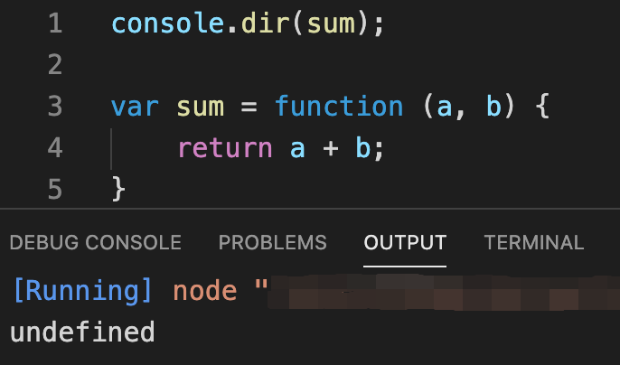 이번엔 일반적으로 선언한 함수와는 다르게 앞서 보았던 변수에 적용되었던 호이스팅과 같이 런타임 이전에 변수 값을 undefined로 초기화만 시킨 상태이네요?