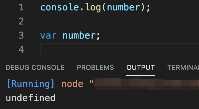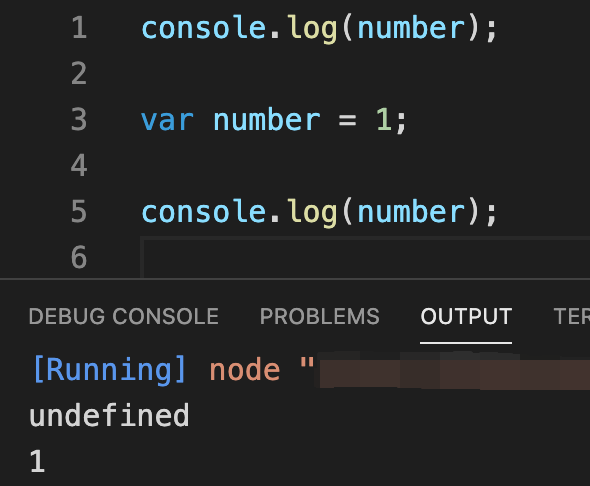 첫 번째 console 코드에서는 number 변수를 호출했을 때 호이스팅으로 인해 변수의 선언과 초기화 단계만 먼저 이루어져 있는 상태이기 때문에 undefined를 출력하는 걸 볼 수 있네요.