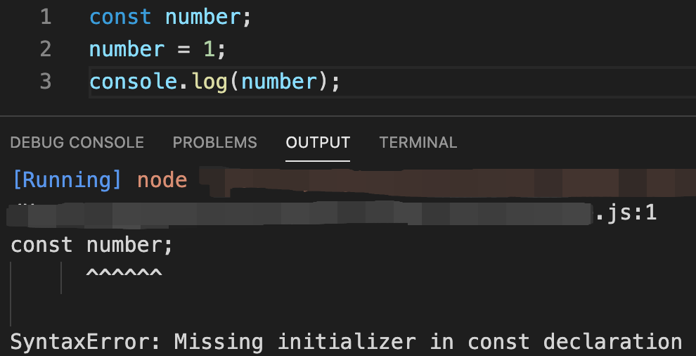 그러면 코드를 수정하여 const로 변수를 선언할 때 값까지 바로 할당을 해 주도록 하겠습니다.