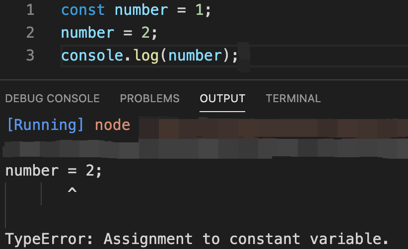 이전 코드에서 number변수에 2라는 값을 재할당하는 코드만 추가해 주었습니다.