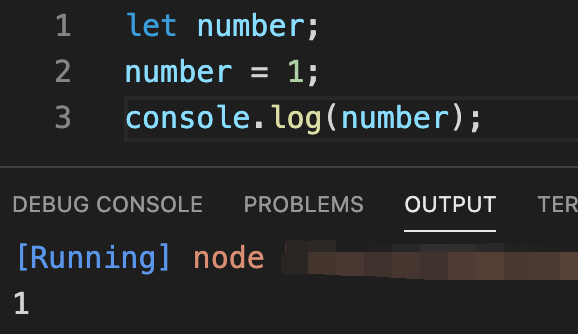 let으로 number 변수를 선언만 해두고 값은 변수의 선언 이후에 할당해 주었는데요, 문제없이 코드가 동작하는 것을 볼 수 있습니다.