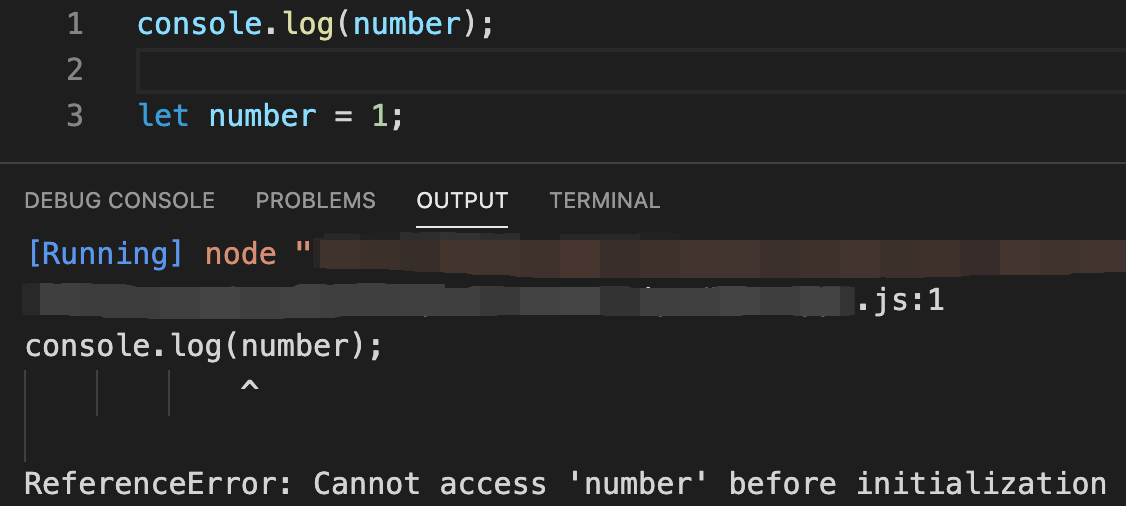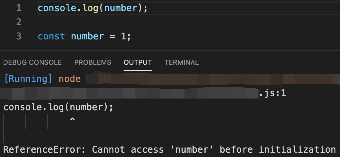 let과 같이 초기화하기 전에 'number'변수에 접근할 수 없다는 에러가 출력되네요!