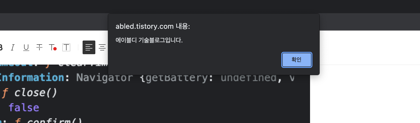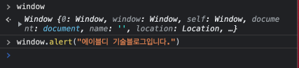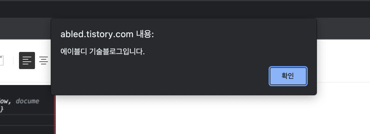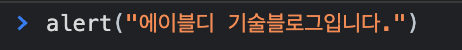 window.alert("에이블디 기술블로그입니다.")