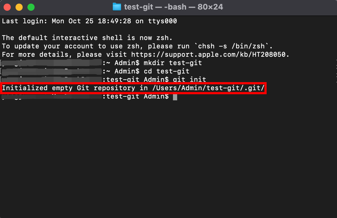 이는 깃을 사용할 수 있도록 디렉터리를 초기화하는 것인데요, 'Initialized empty Git repository ... '라는 메시지가 나타나면 해당 디렉터리에서 깃을 사용 할 수 있게 된 겁니다.
