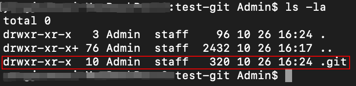 빨간 네모 안의 메세지까지 확인하셨다면 ls -la라는 명령을 사용해서 디렉터리 안의 내용을 확인해 보시면 '.git'이라는 디렉터리가 생겨 있을 텐데요, 이 디렉터리가 깃을 사용하면서 버전이 저장될 'repository(저장소)'입니다.
