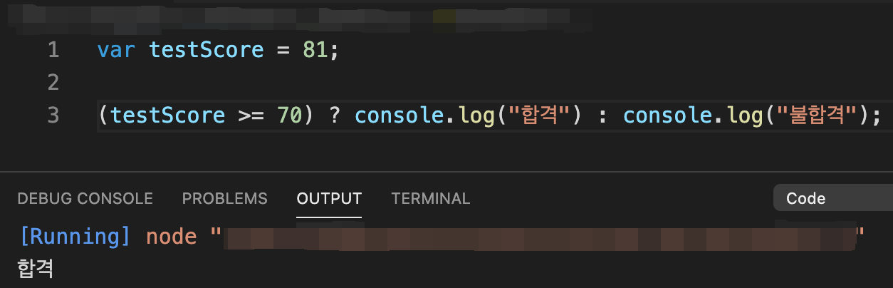 (testScore >= 70) ? console.log("합격") : console.log("불합격");